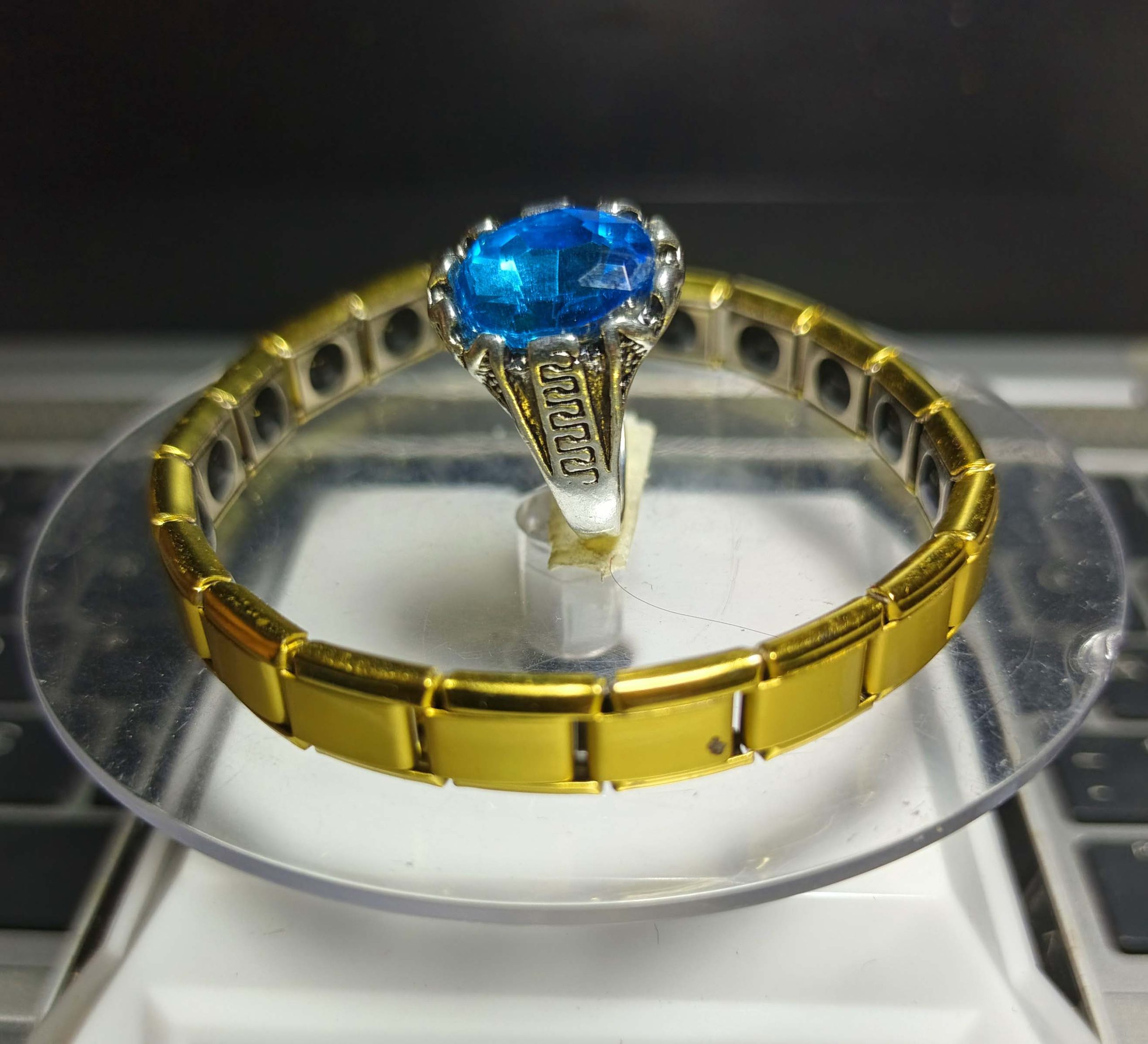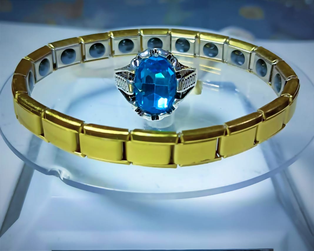 টাইটেনিয়াম ব্রেসলেট এর সাথে একটি ইন্দ্রনীলা পাথরের আংটি থাকবে।